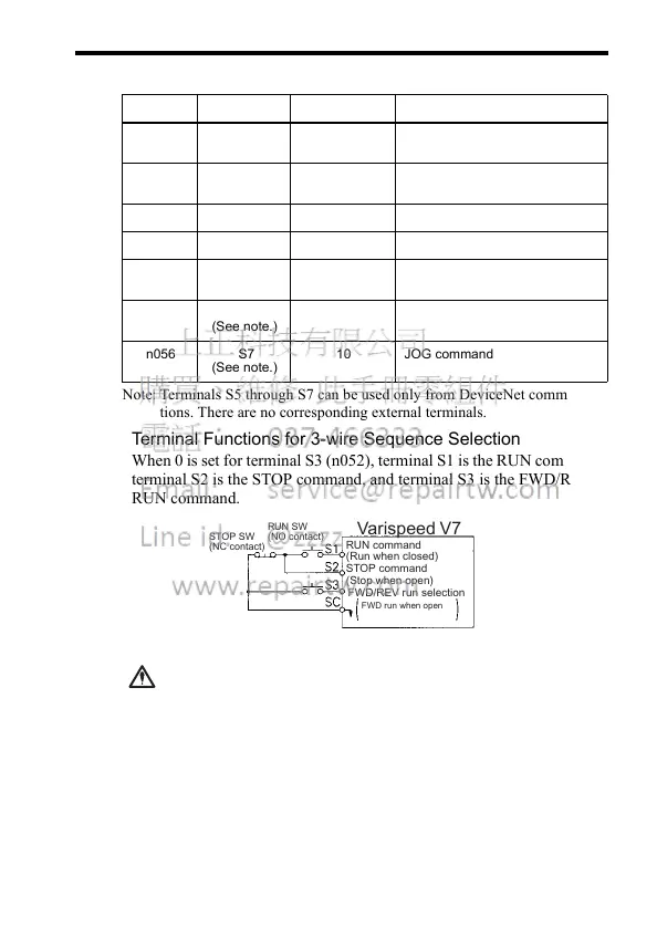 To select the 3-wire sequence, set terminal S3 (n052)
