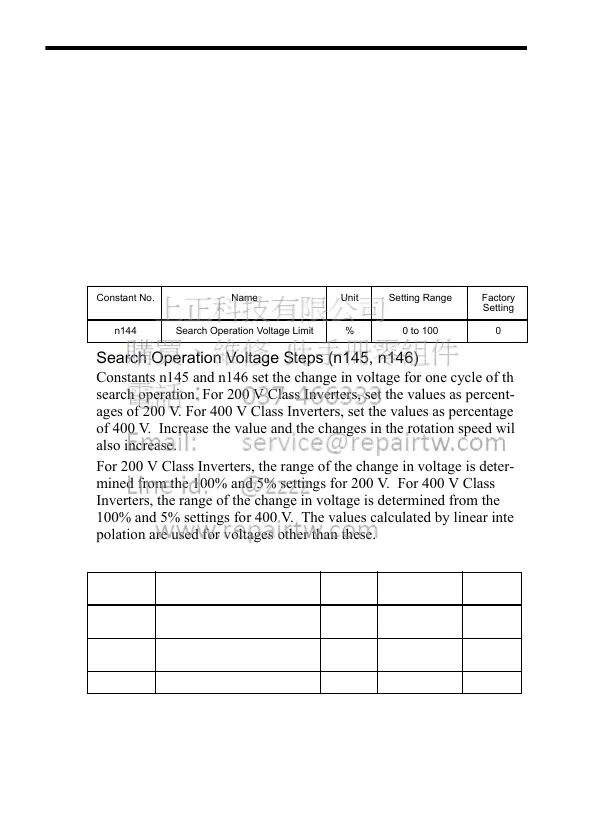 ages of 200 V. For 400 V Class Inverters, set the values as percentages