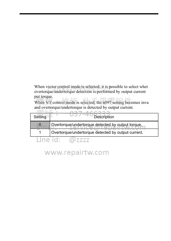 When V/f control mode is selected, the n097 setting becomes invalid,