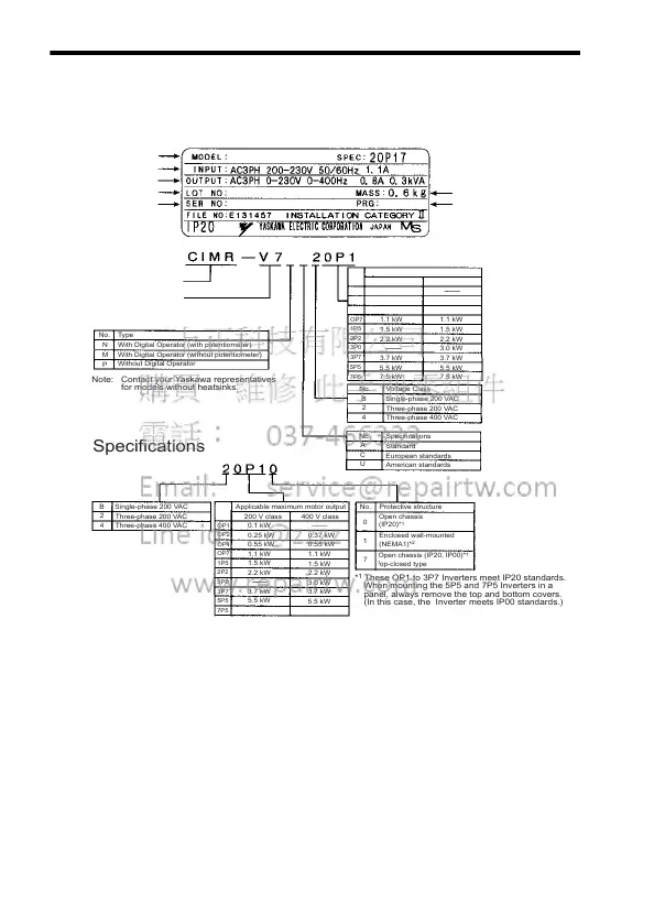 (In this case, the Inverter meets IP00 standards.)
