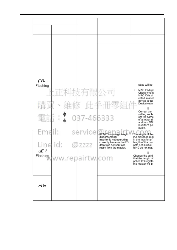 Communications error • Baud rate setting