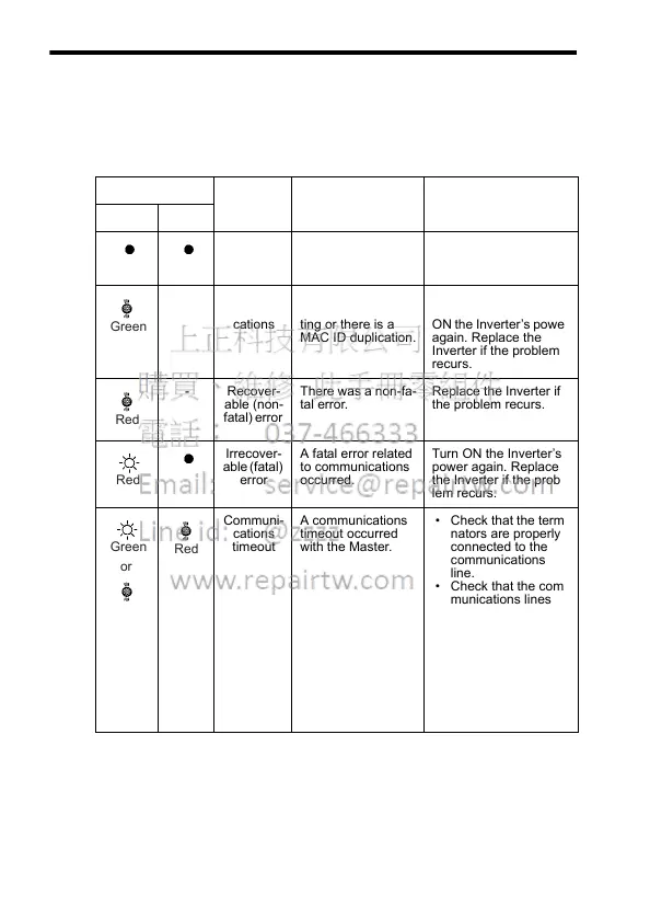 cators on the Inverter, the likely causes of the errors, and the recom-
