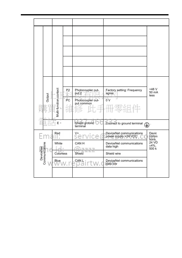 Type Terminal Name Function (Signal Level)