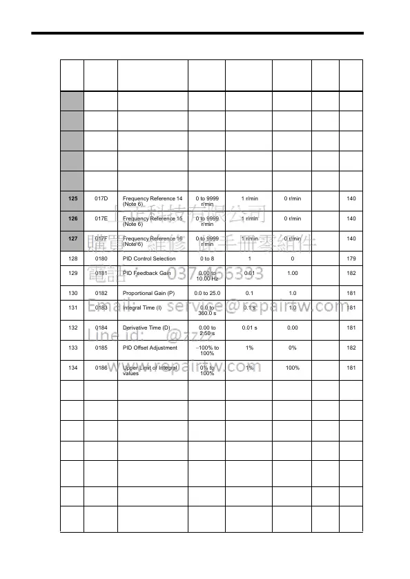 130 0182 Proportional Gain (P) 0.0 to 25.0 0.1 1.0 181