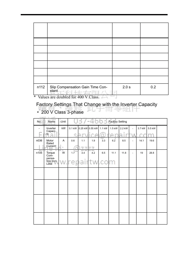 Factory Settings That Change with the Inverter Capacity