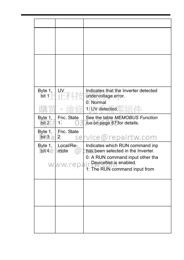 See the table MEMOBUS Function Sta-