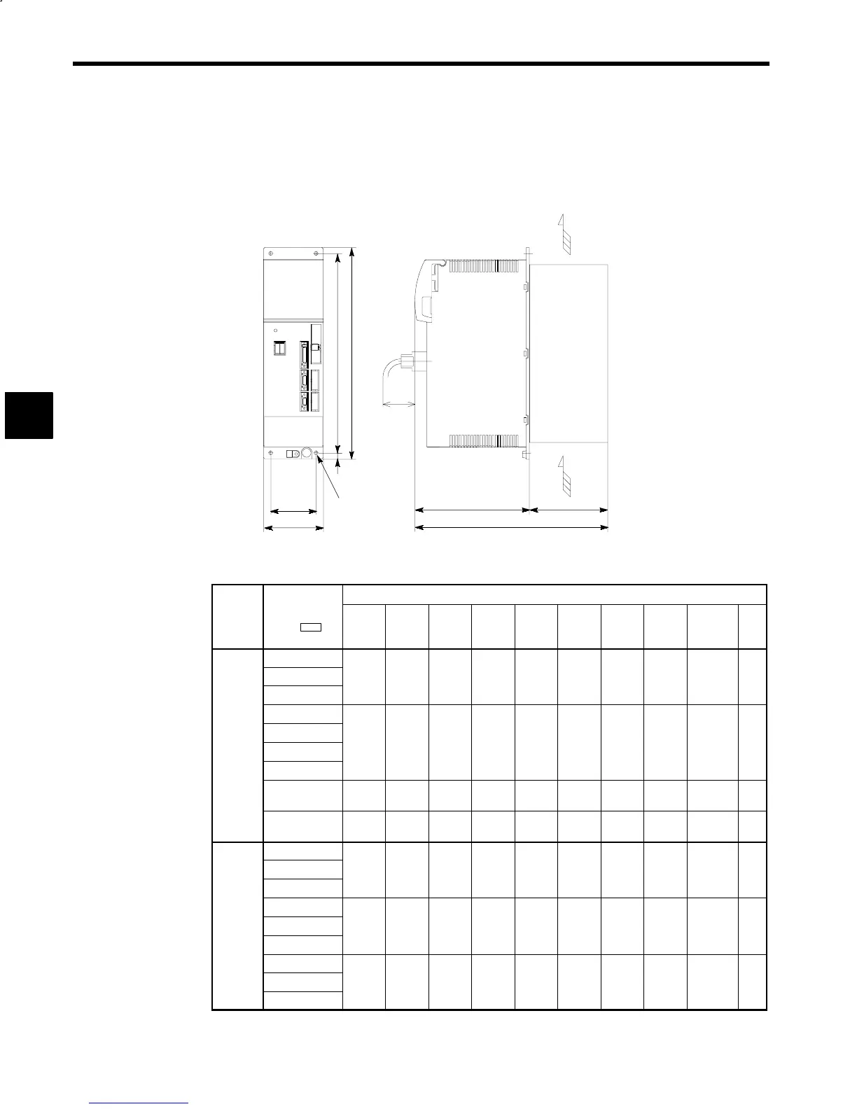 The figures below show a 200 V 10 HP (7.5 kW) model.