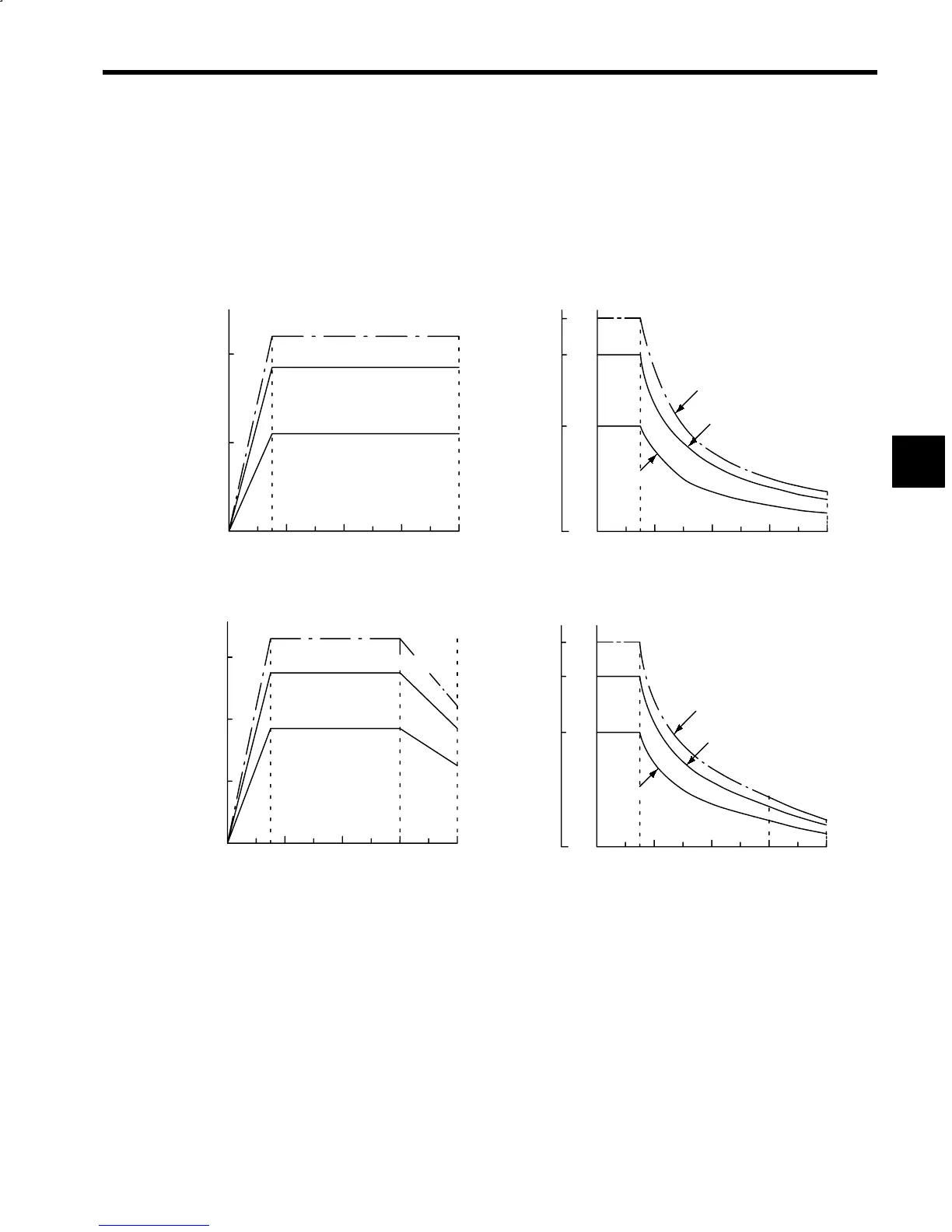 The output characteristics are the same for both the 200 V and 400 V Series. Note that 3.7/2.2 kW is avail-