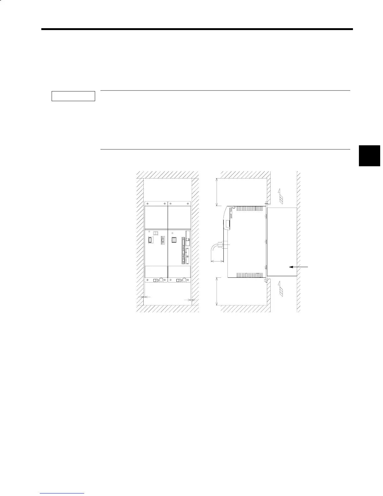 Install the Inverter and Converter vertically and allow sufficient clearances for effective cooling as shown in