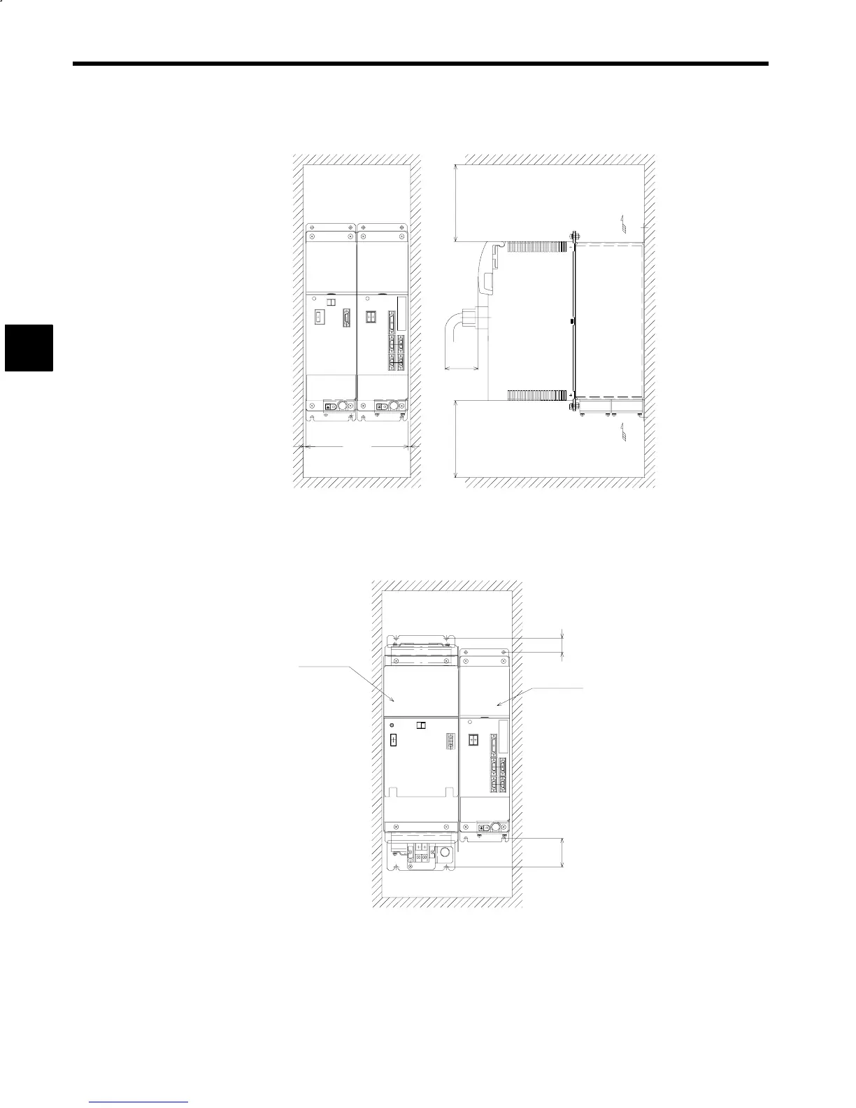 Fig 2.11 Clearances when Combining a Converter or 11 kW or More with an Inverter of