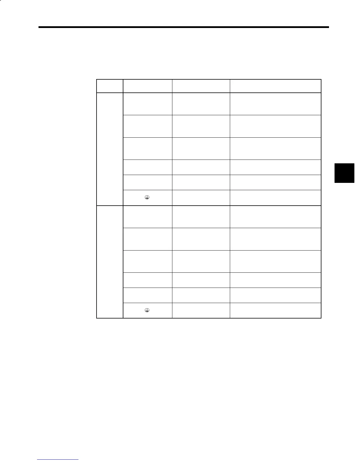The following tables outline the functions of the main circuit terminals.