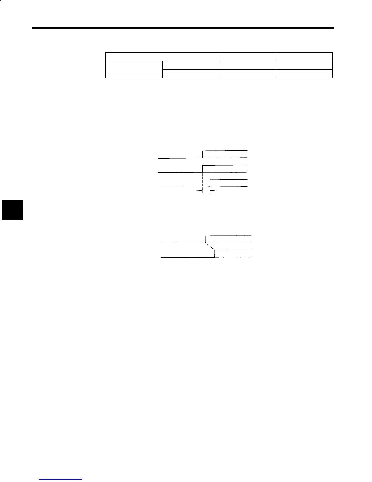 Turn ON the FWD or REV signal at least 15 ms after the EMG and RDY signals are turned ON. The