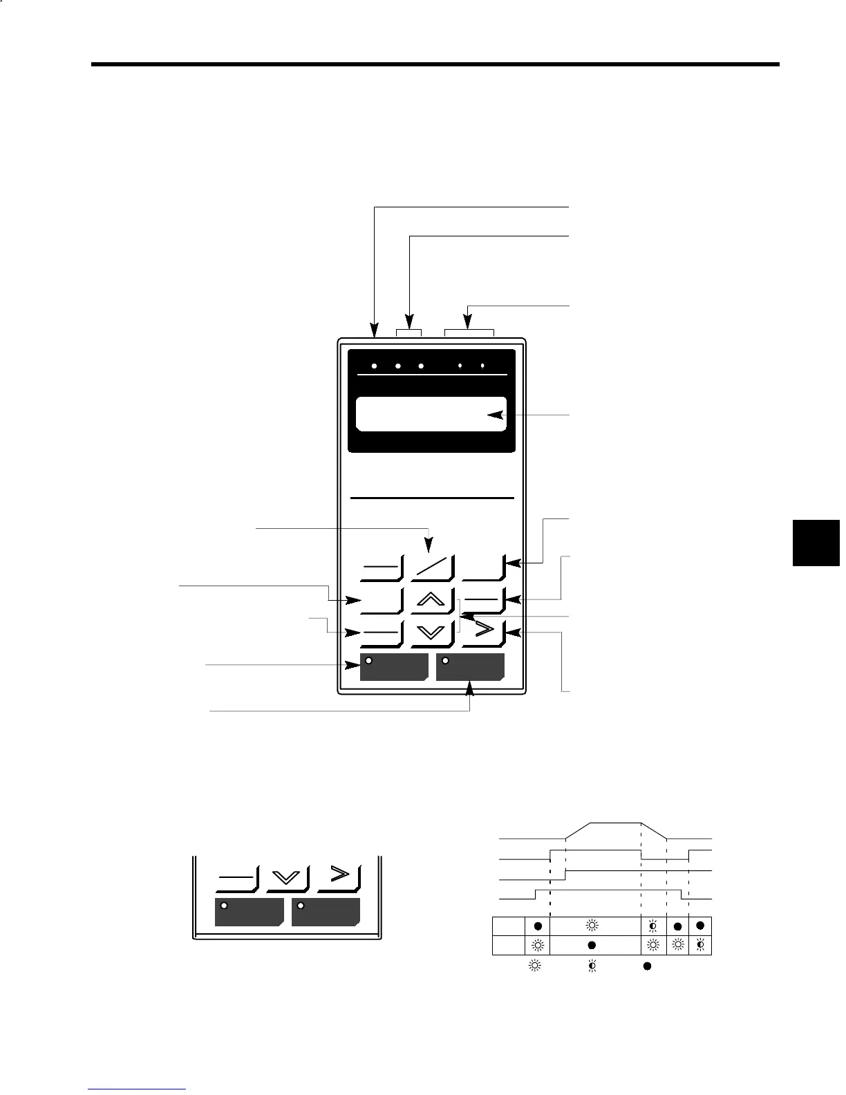 Fig. 5.1 shows the display section and operation keys of the Digital Operator, and Fig. 5.2 shows the LED dis-