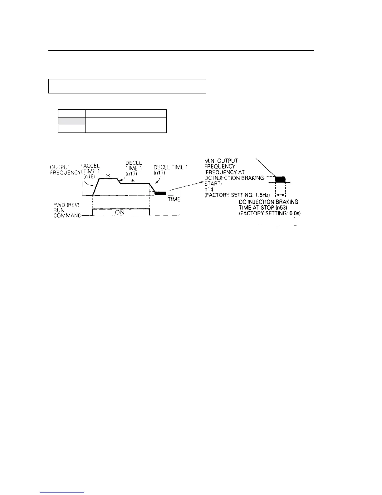 determined by the time set to decel time 1 (n17) and DC injection braking is applied