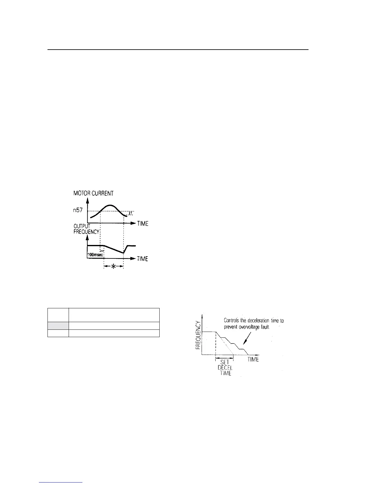 As long as the output current exceeds the value set for n57 deceleration continues.