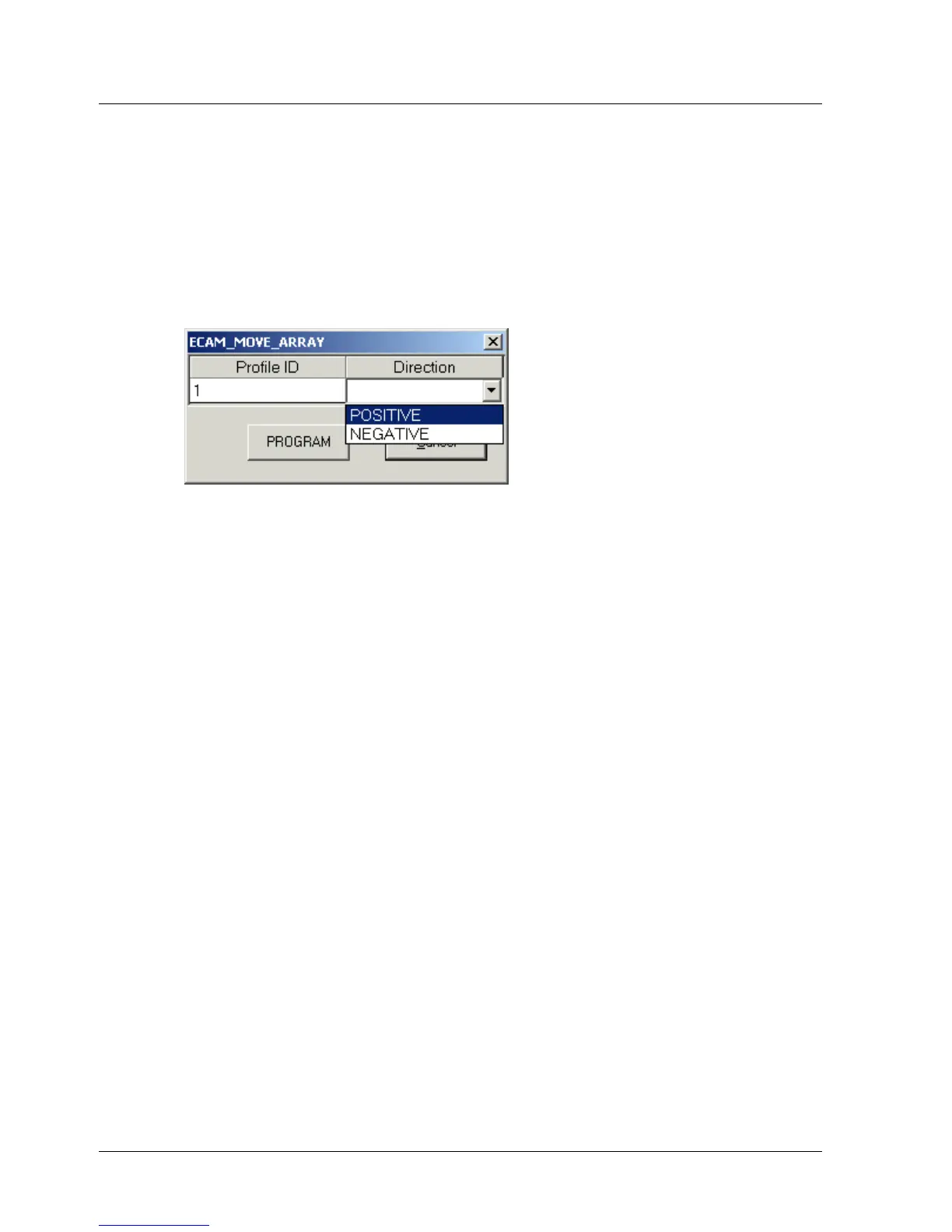 Format: ENGAGE_VIRTUAL_AXIS <Profile ID> <Direction>