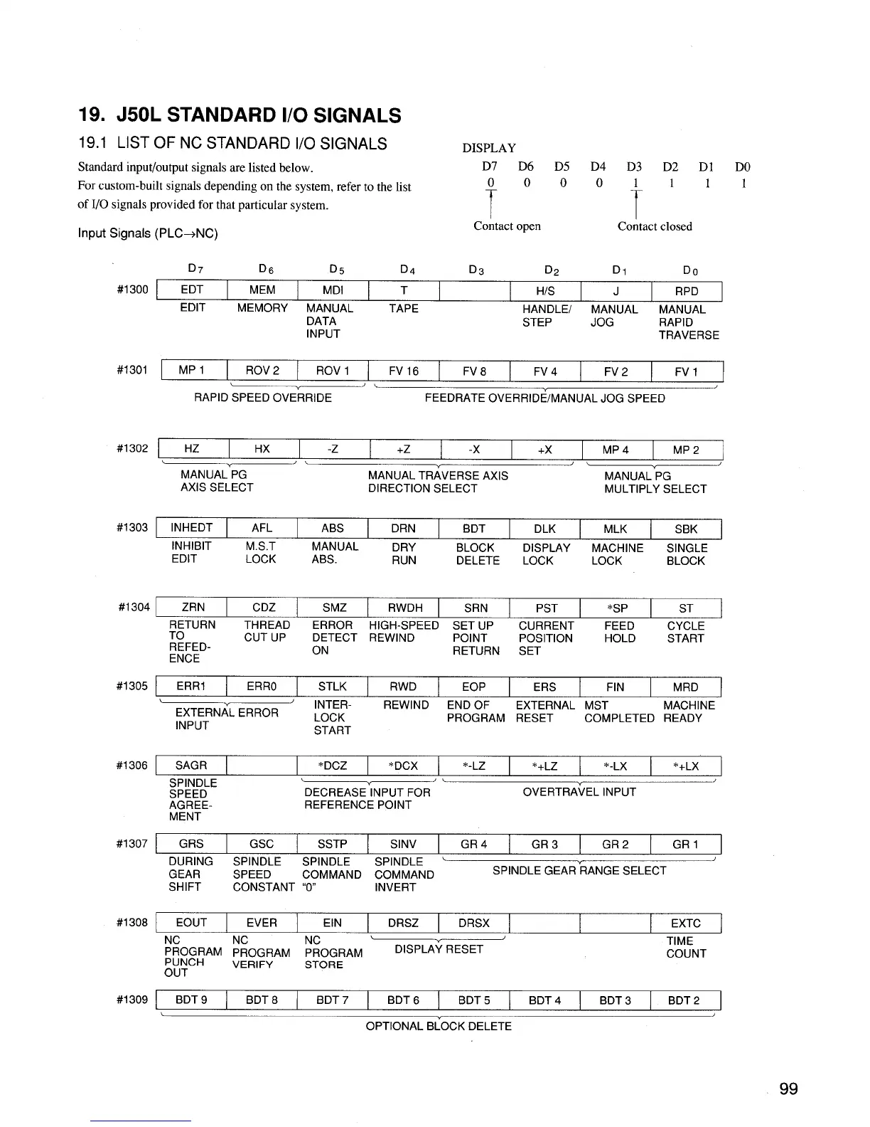 19.1 LIST OF NC STANDARD [/0 SIGNALS