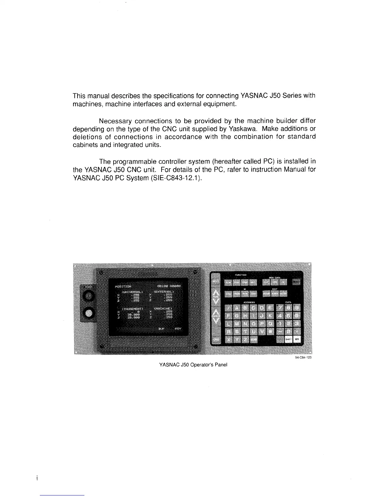 the YASNAC J50 CNC unit. For details of the PC, rafer to instruction Manual for