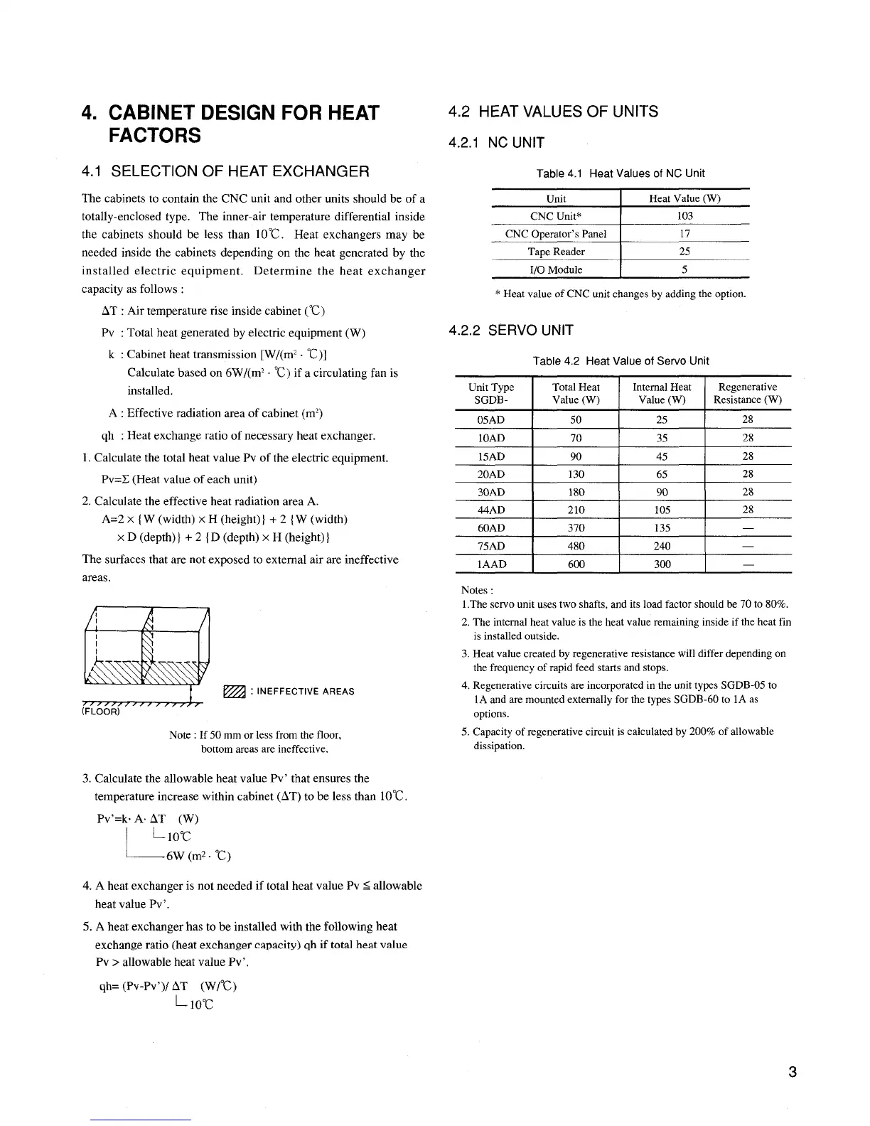 temperature increase within cabinet (AT) to be less than 10°C.