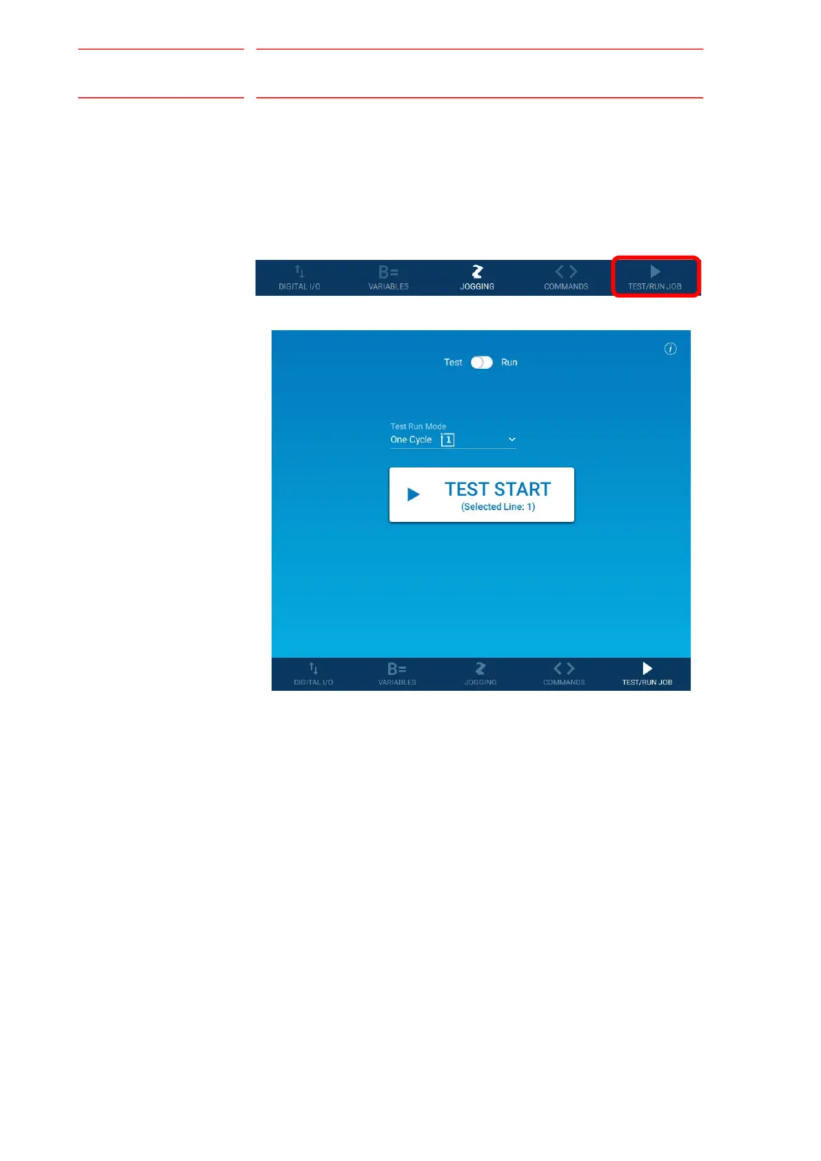 3. Go to {TEST/RUN JOB} from the Navigation Bar.