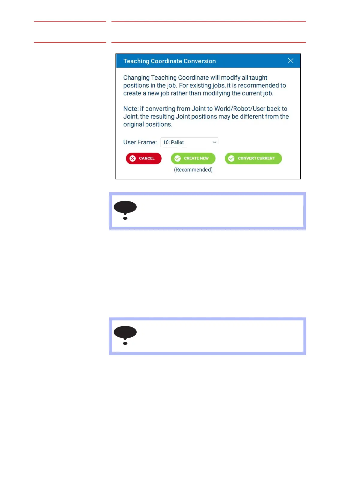 copy of a job when converting Teaching Coordinate.
