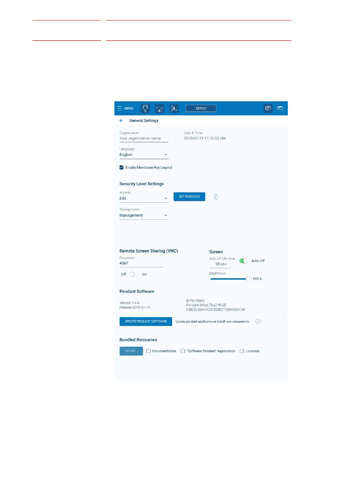 versions and ID numbers. To access the General screen, go to