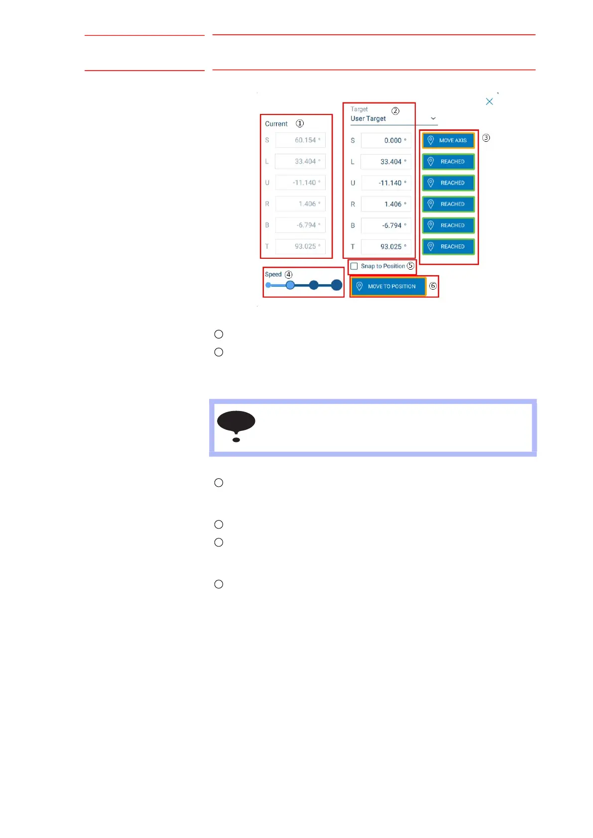 target position. The button has an orange border if the Current Position of