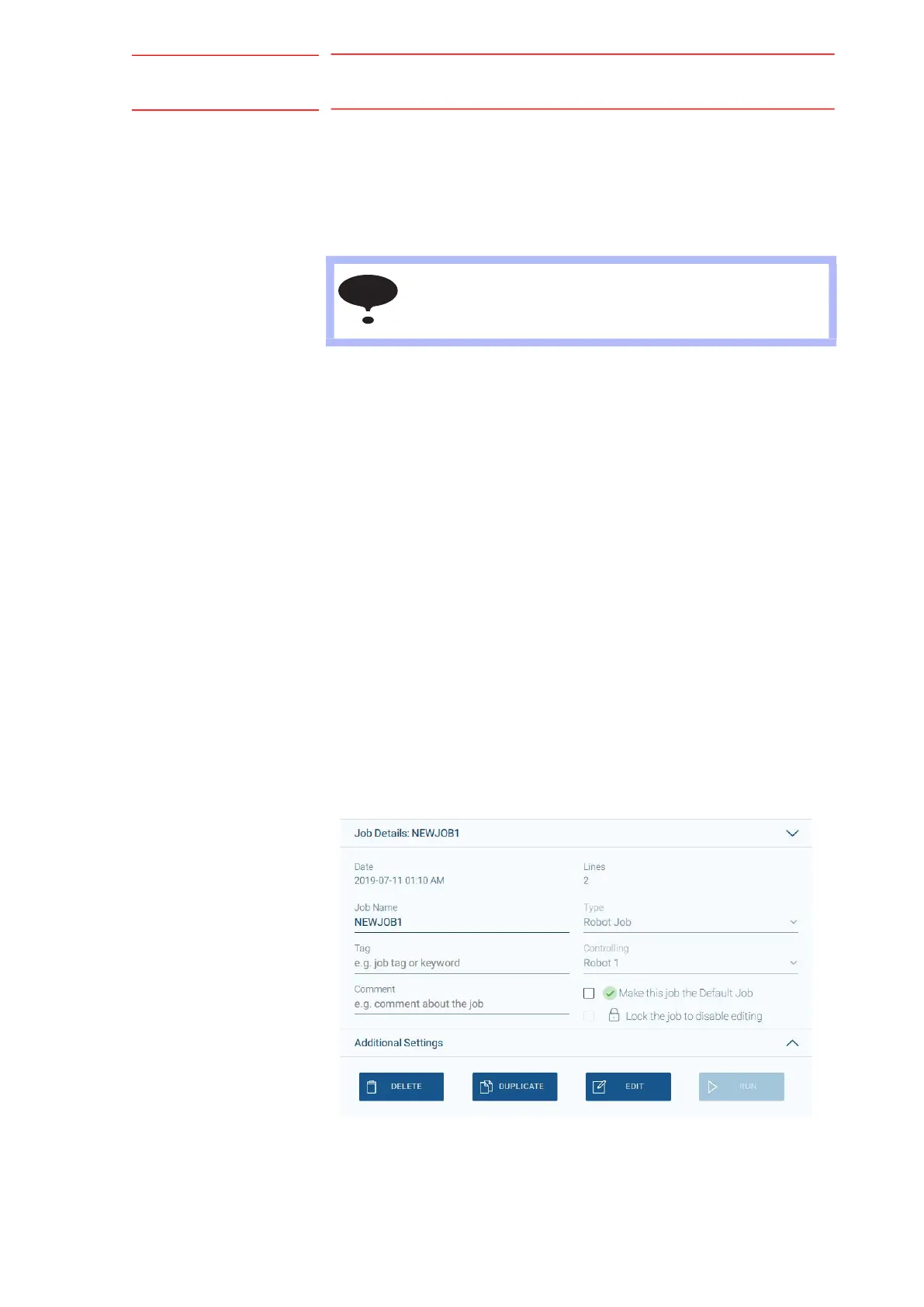 • The job settings (e.g. Job Name, Comment, Tag) can be edited