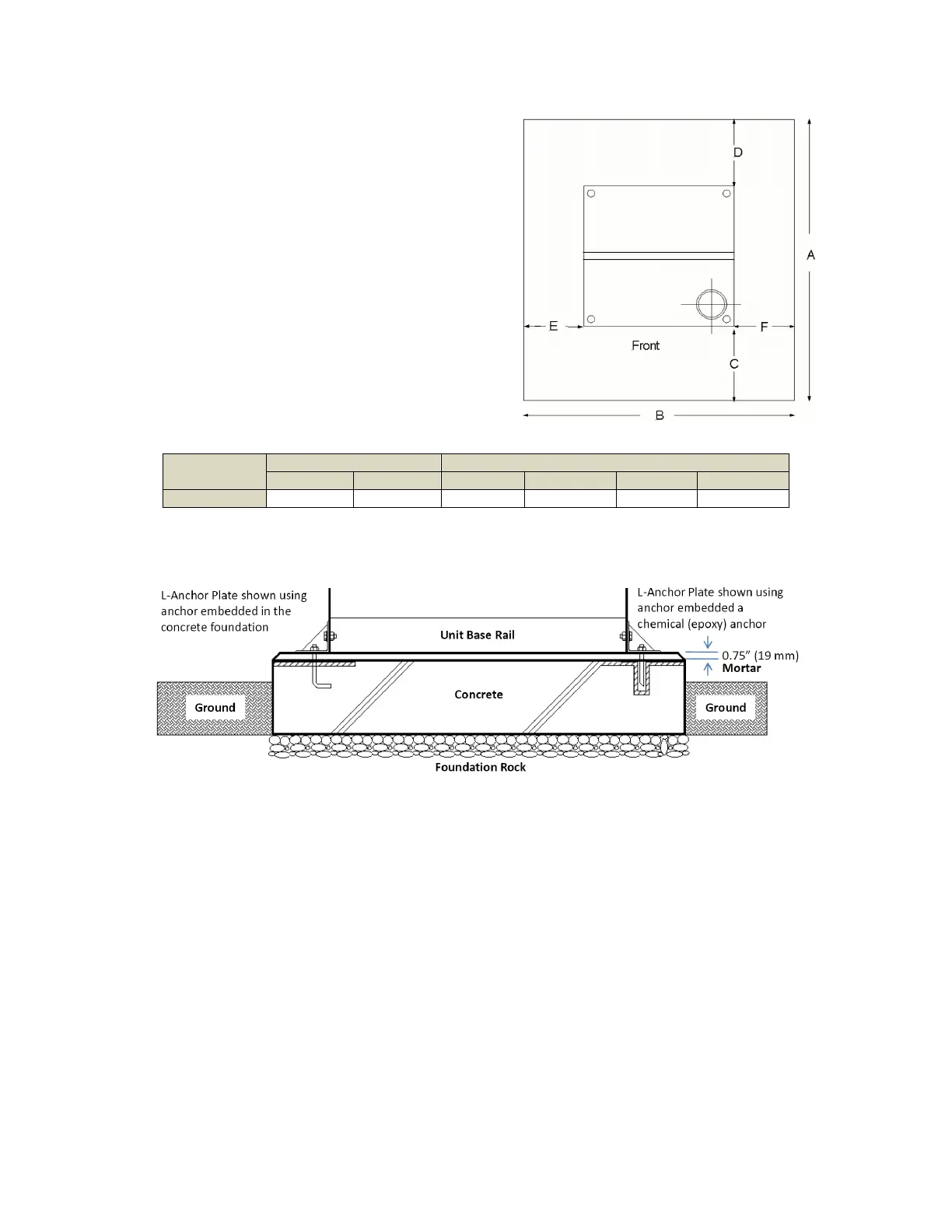 concrete base and the soil beneath are