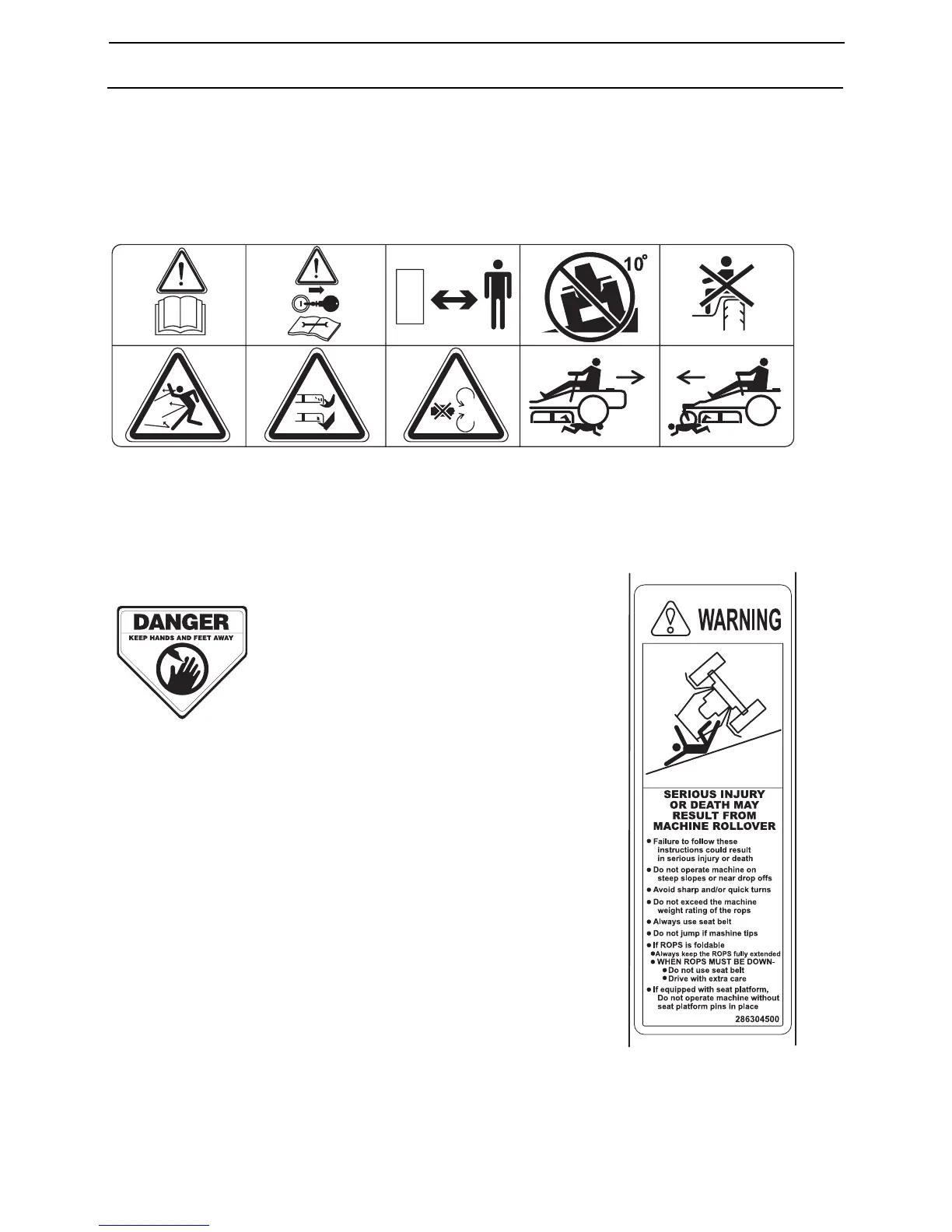 Yazoo/Kees ZVKH61273 - Safety Pictograms and Instructions; Danger Warnings; ROPS Warning Decal