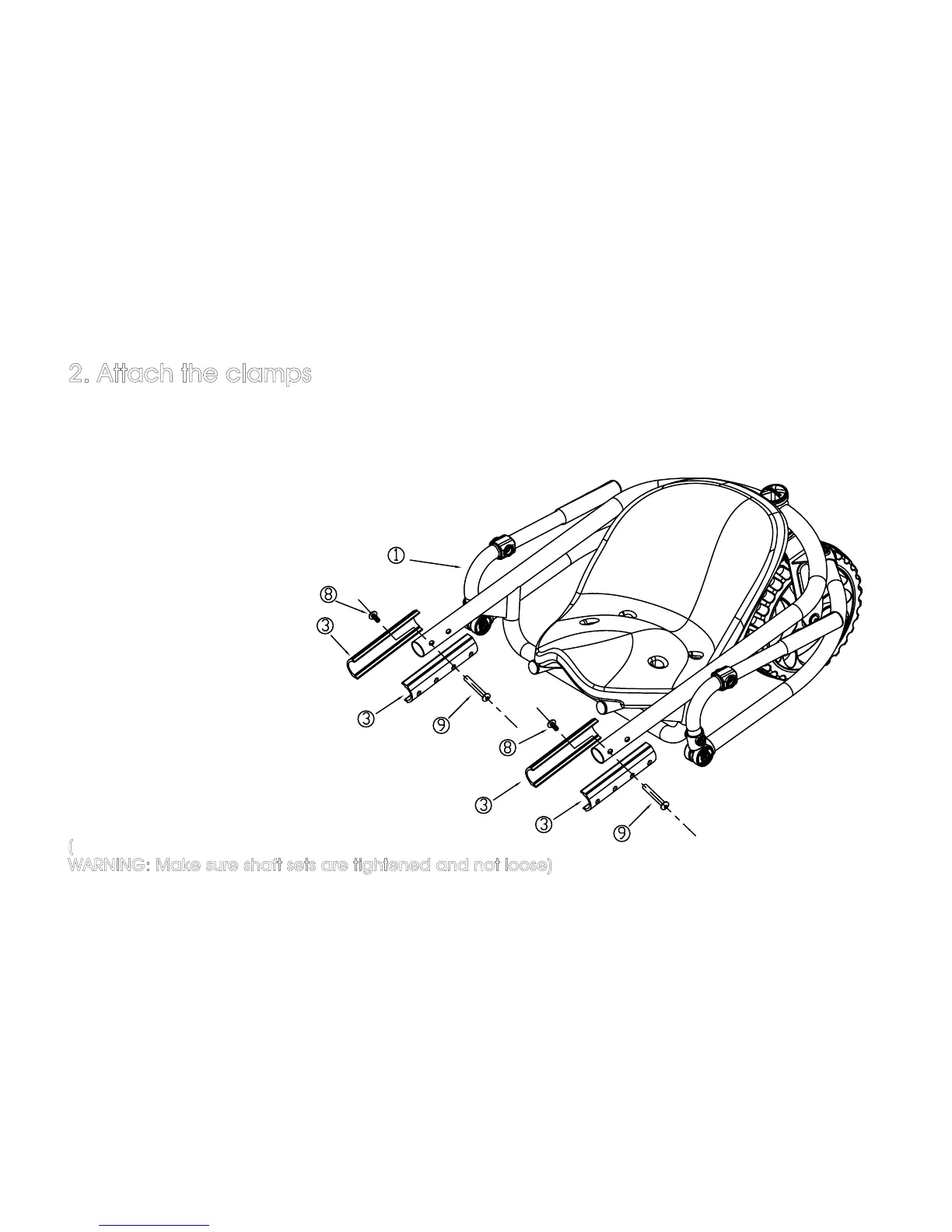 Take 2 clamps (No. 3), and place each clamp on either side of the rear frame (No. 1) tube to