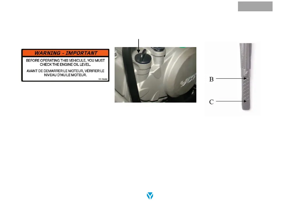 dessous de l’indicateur de niveau minimum (C) ajouter de l’huile du type recommandé pour atteindre