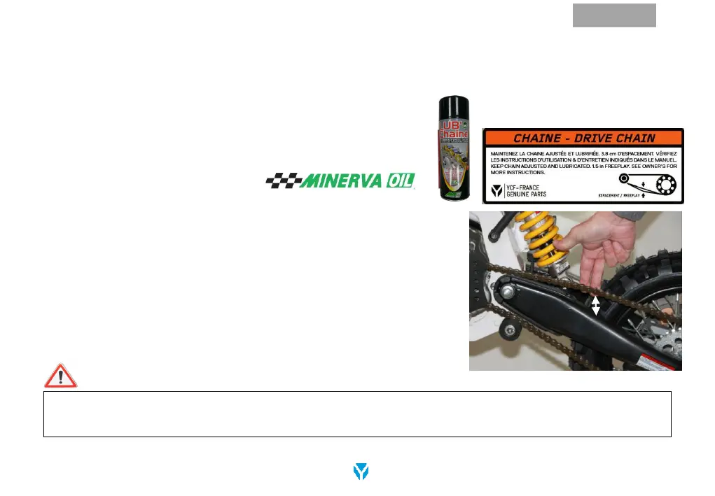 Ne jamais procéder à l’entretien de la chaîne lorsque la moto est en marche. Ceci pourrait causer de graves