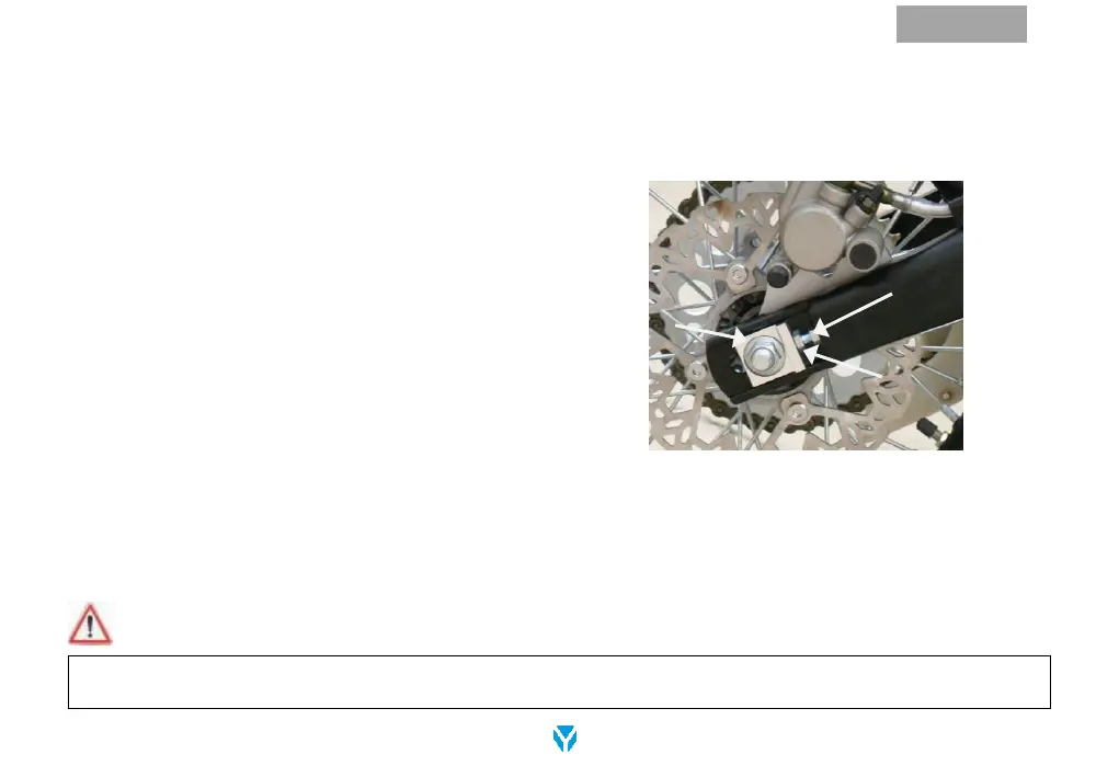 3. Tourner d’un nombre égal de tours les tendeurs de tension de chaîne (C) des deux côtés de la moto,