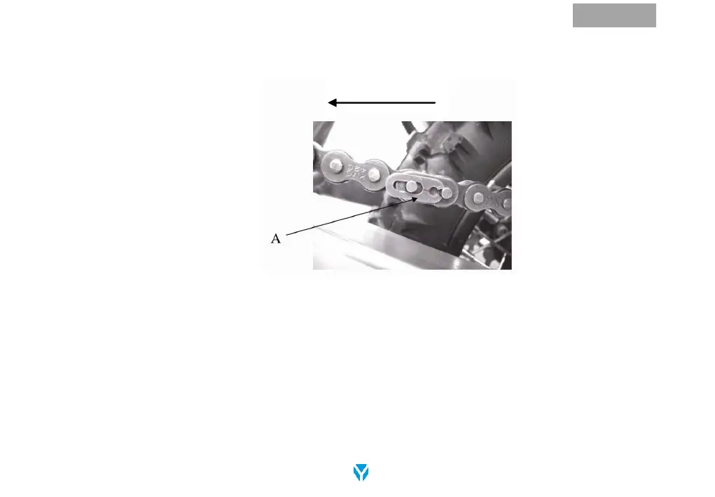 6. Placer la chaîne sur les pignons. Relier les deux extrémités de la chaîne à l’aide du maillon maître.