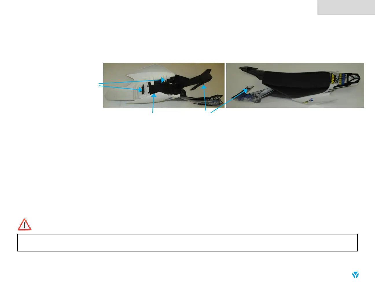 1. Positionner le Système Modulaire de Selle en le glissant vers le réservoir d’essence. Clipper le module au cadre