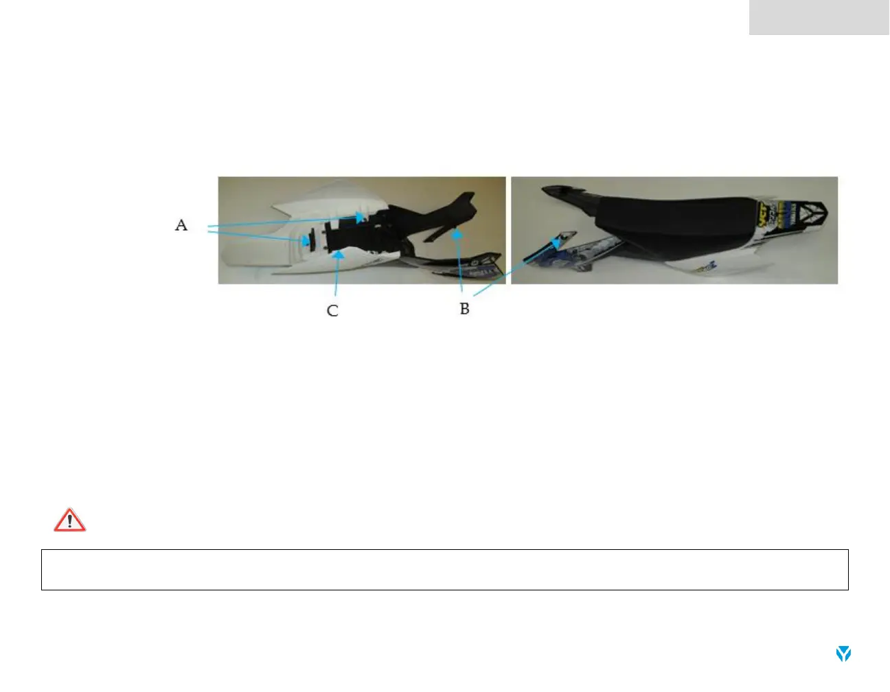 3. Remove rear bolts (C) underneath the saddle.