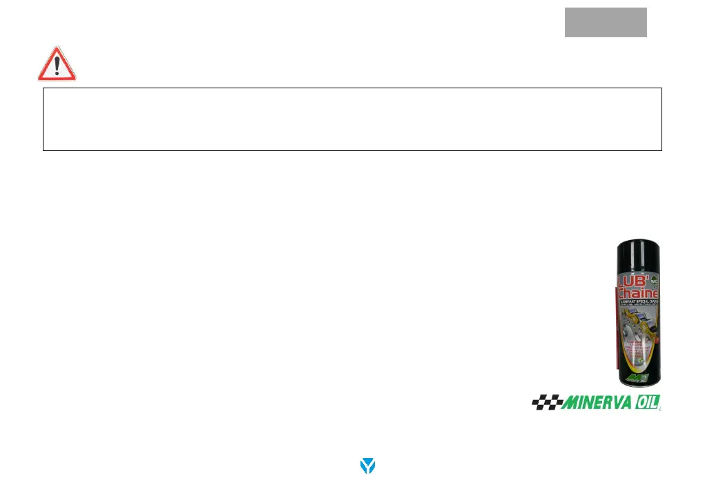Owner’s Manual, using the MINERVA OIL LUB’ CHAINE spray.