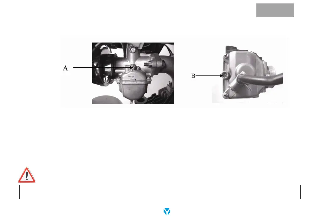 (A) Idle adjustment screw (B) Idle air & fuel mixture screw