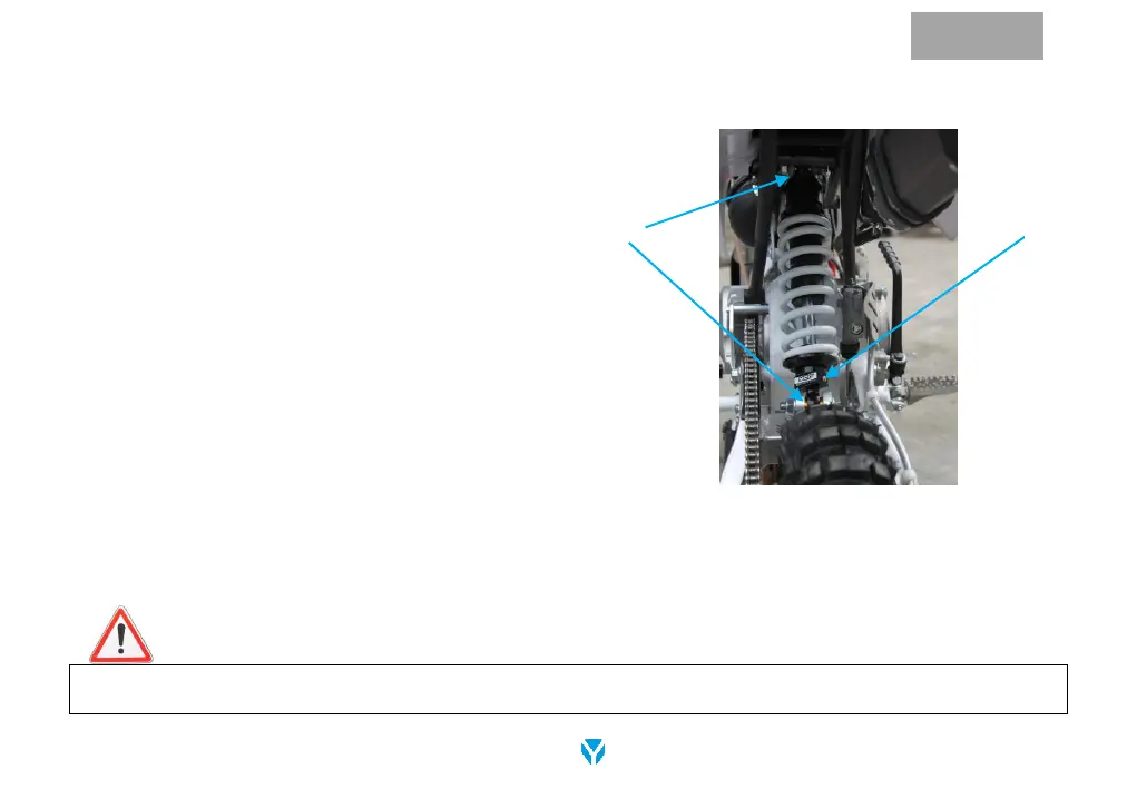 The rear shock absorber contains highly compressed flammable gas. Do not try to open or disassemble it