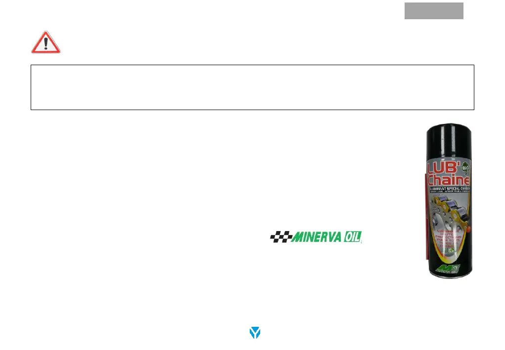 4. Lubrifier la chaîne avec le spray LUB’ CHAINE