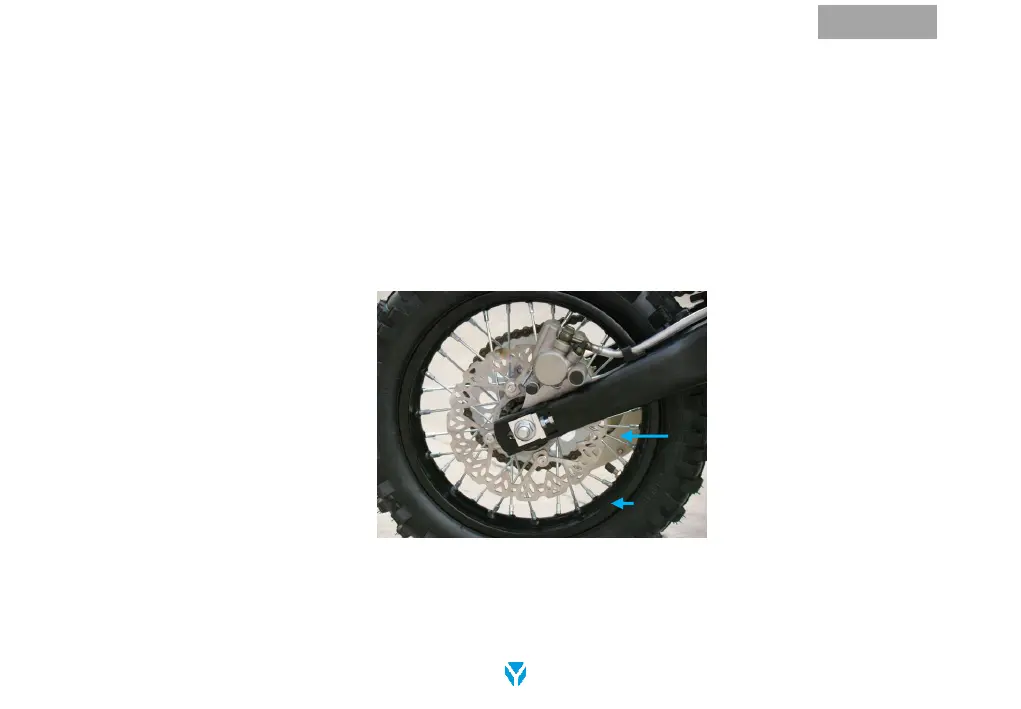 3. Si vous constatez que la roue ne tourne pas parfaitement dans l’axe, contacter votre revendeur YCF pour