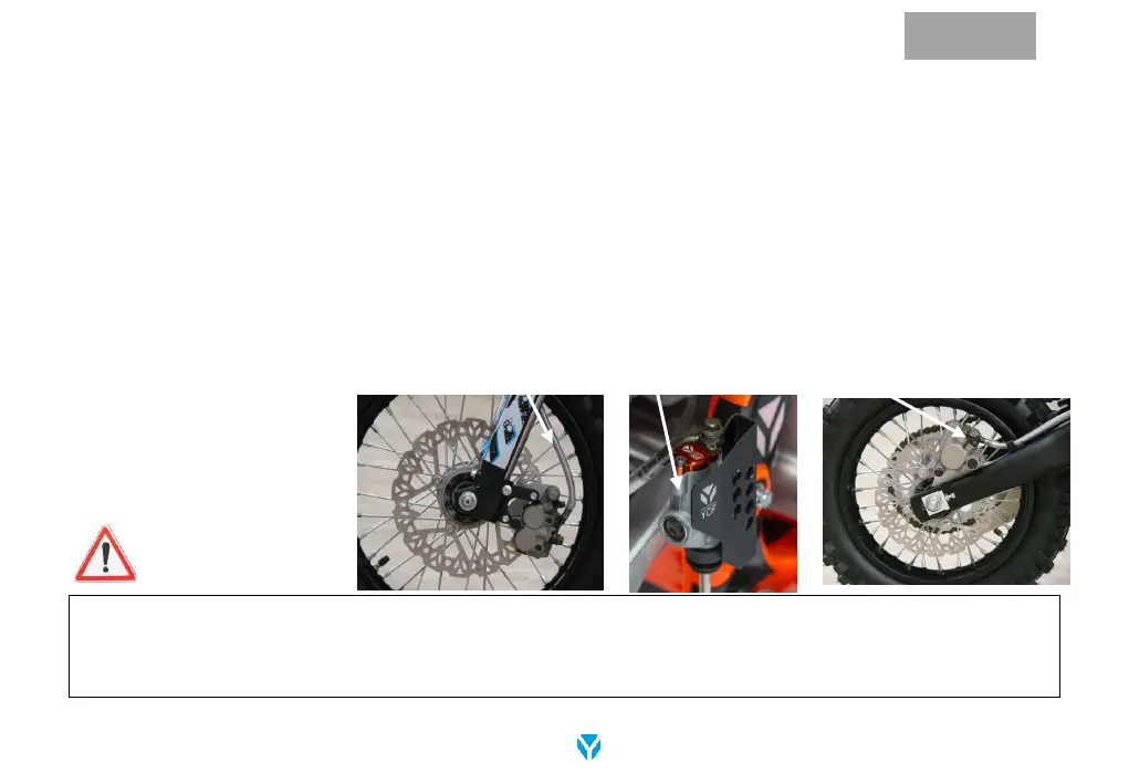 Your YCF Mini-Motorbike is equipped with state-of-the-art disc brakes, both at the front and the rear. Keep