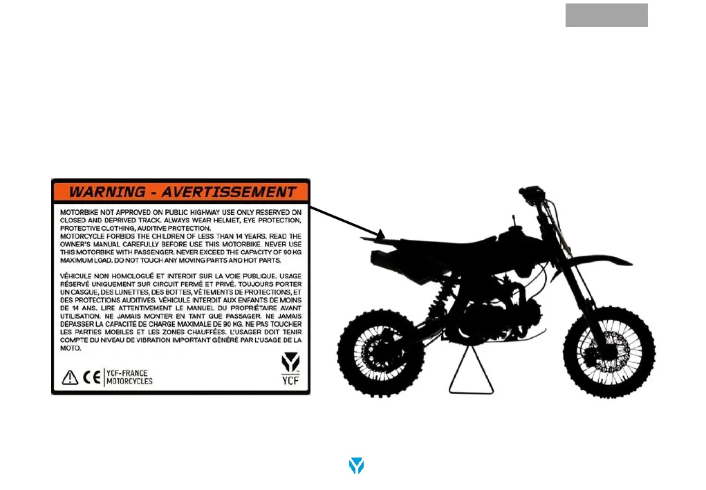Cette page vous indique est située la plaque curité sur votre moto. Elle vous avertit des risques