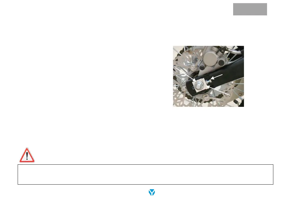 4. Tighten the chain adjuster lock nuts on both sides of the swingarm.