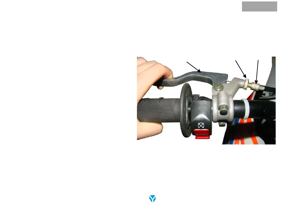1. Contrôler le jeu de la poignée d’embrayage. S’il est supérieur à 5 mm (0,20 pouces) alors un réglage
