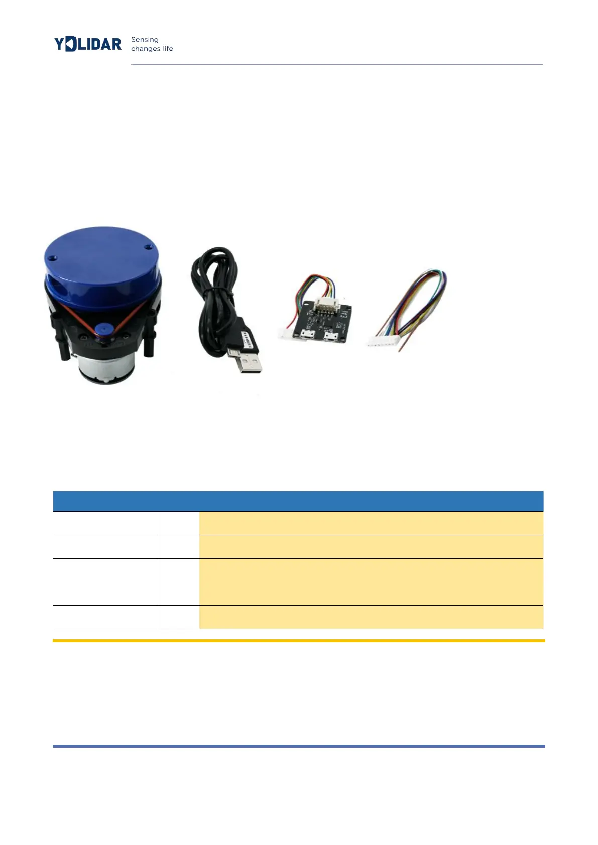 CHART 1 YDLIDAR X4 DEVELOPMENT KIT DESCRIPTION