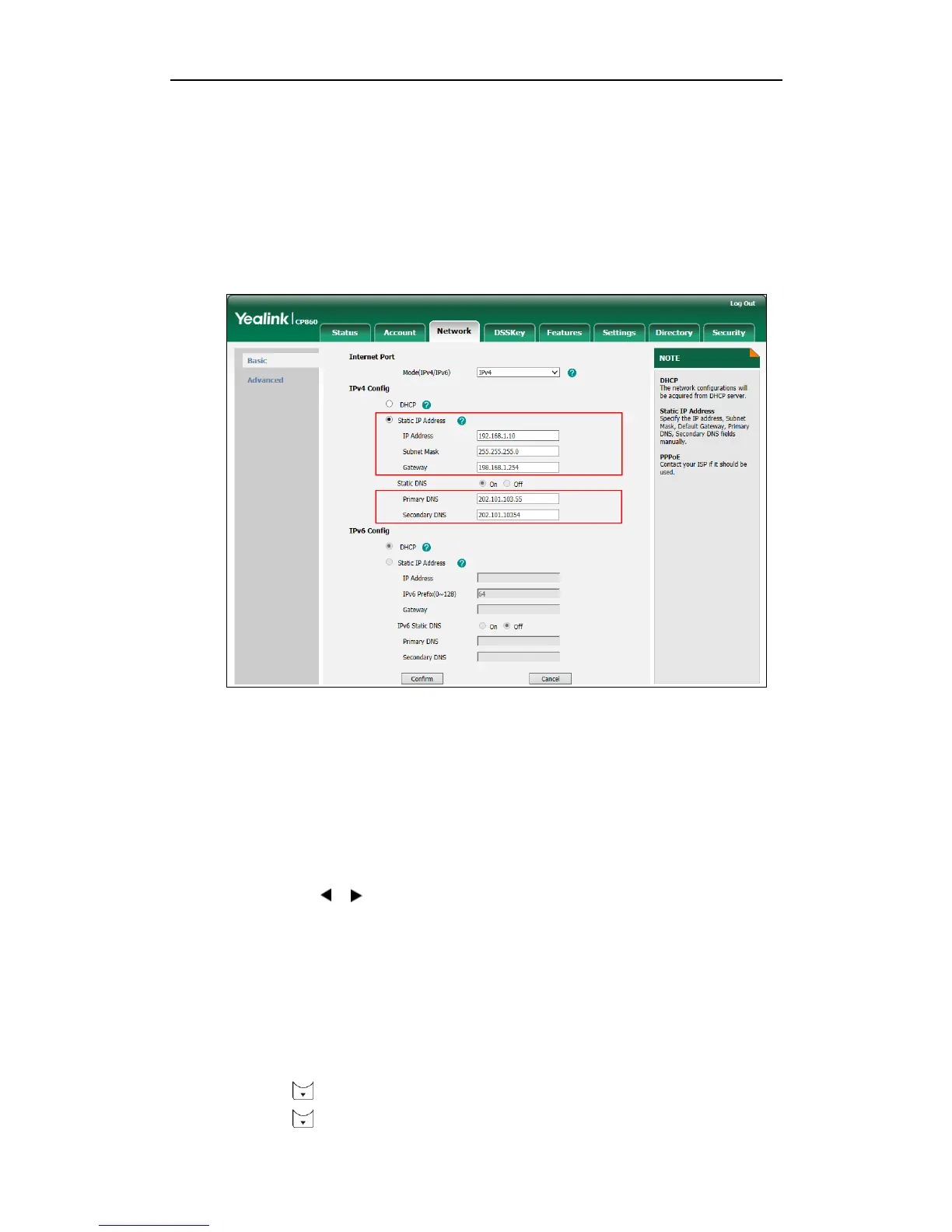3. Press to select Static IPv4 Client and press the Enter soft key.