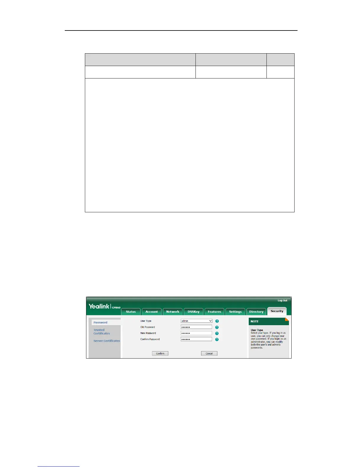 Note: IP phones support ASCII characters 32-126(0x20-0x7E) in passwords. You can