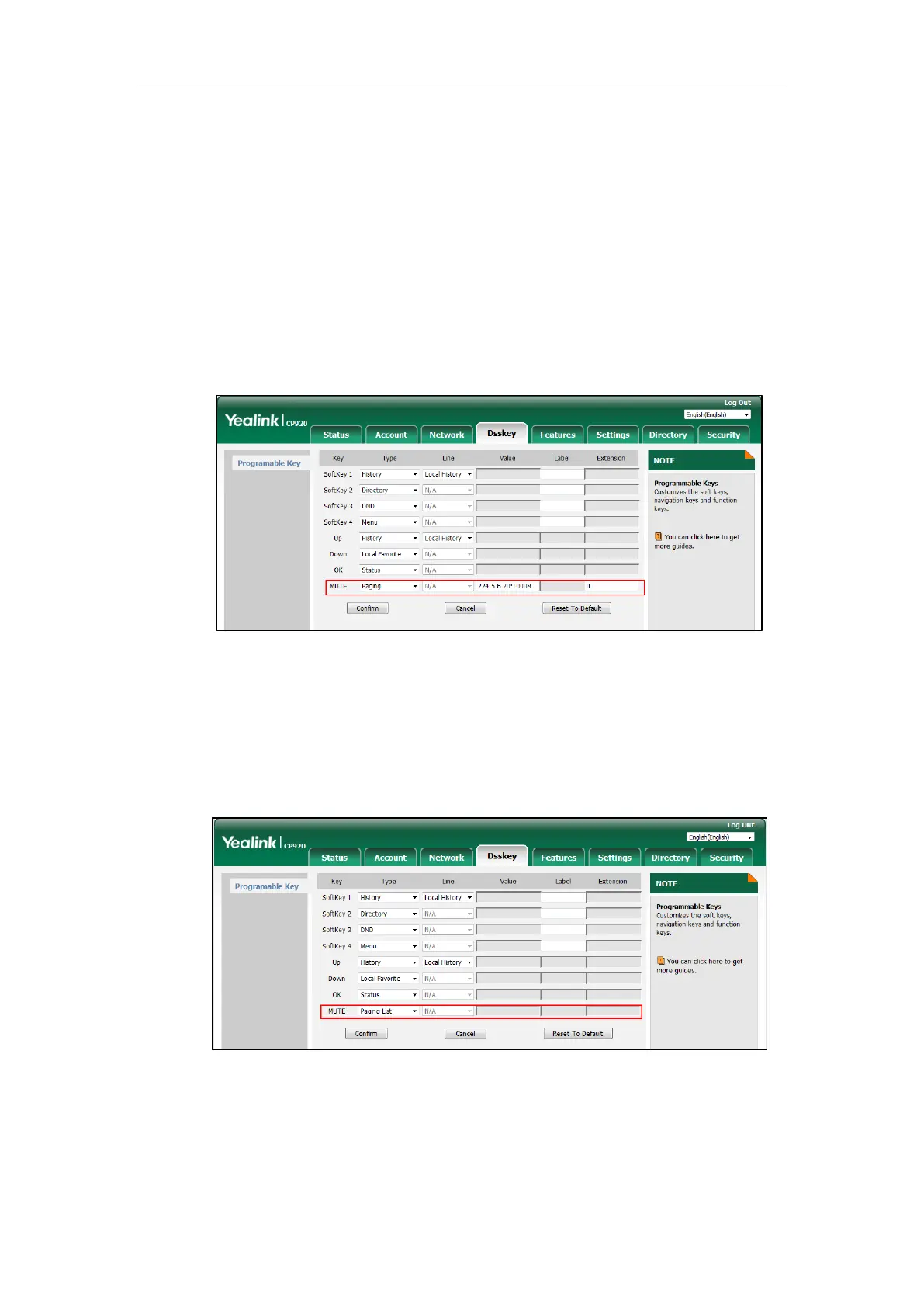 2. If the paging list key is not configured, you can also tap Menu->Features->Paging List